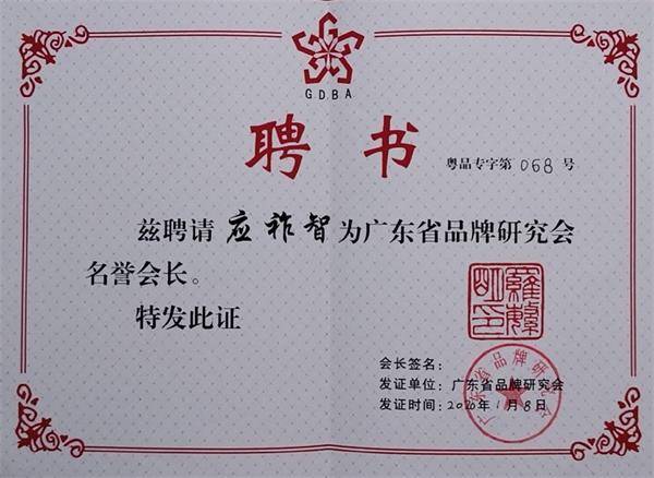 全成地信集團文化大使應(yīng)祚智教授受聘為廣東省品牌研究會榮譽會長
